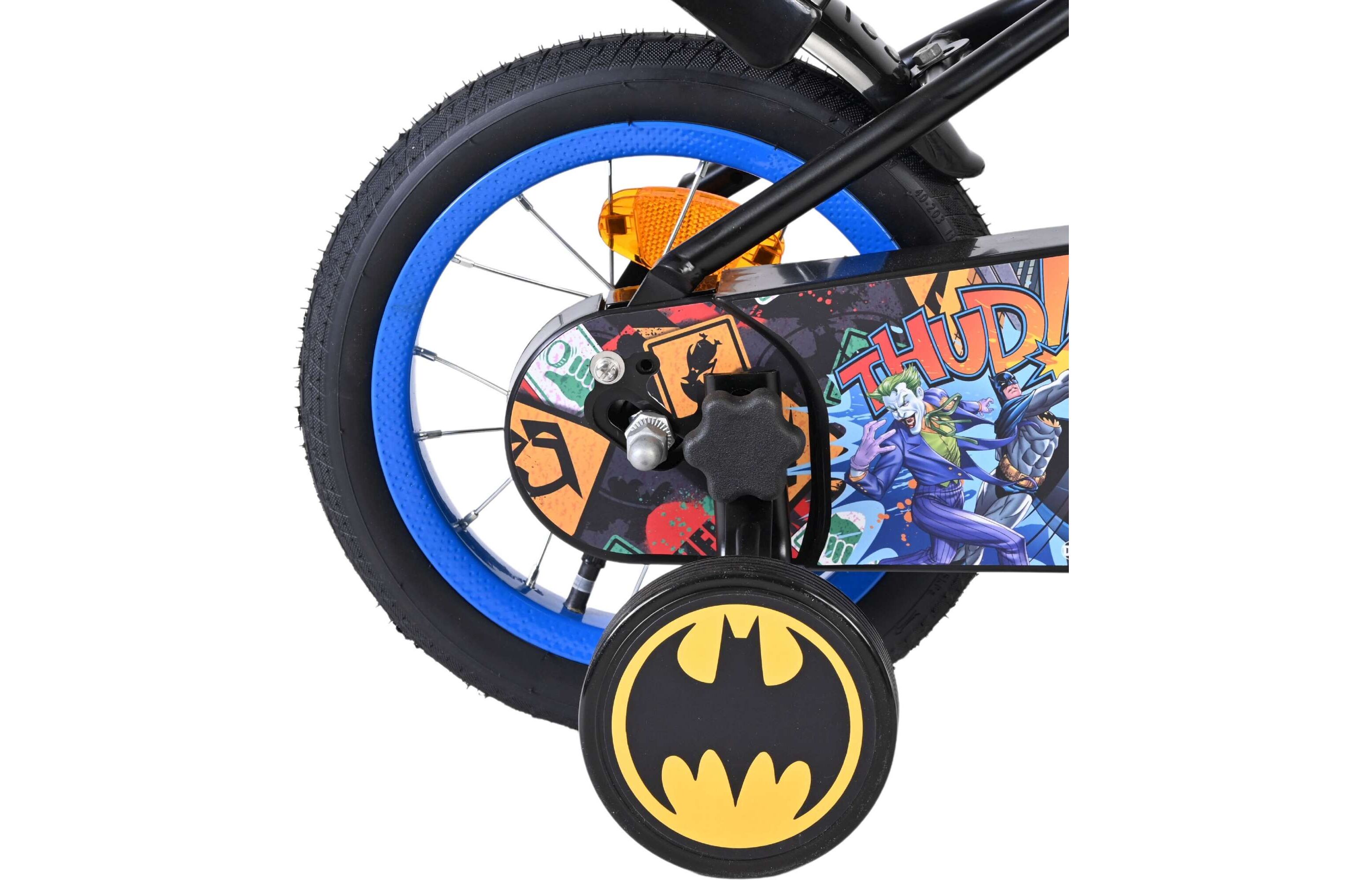 De zwarte Batman 12 inch kinderfiets is dé fiets voor kleine superhelden – officieel gelicentieerd! Met terugtraprem, zijwieltjes, bel en extra lange spatborden is deze stoere fiets perfect voor veilige en avontuurlijke ritjes.