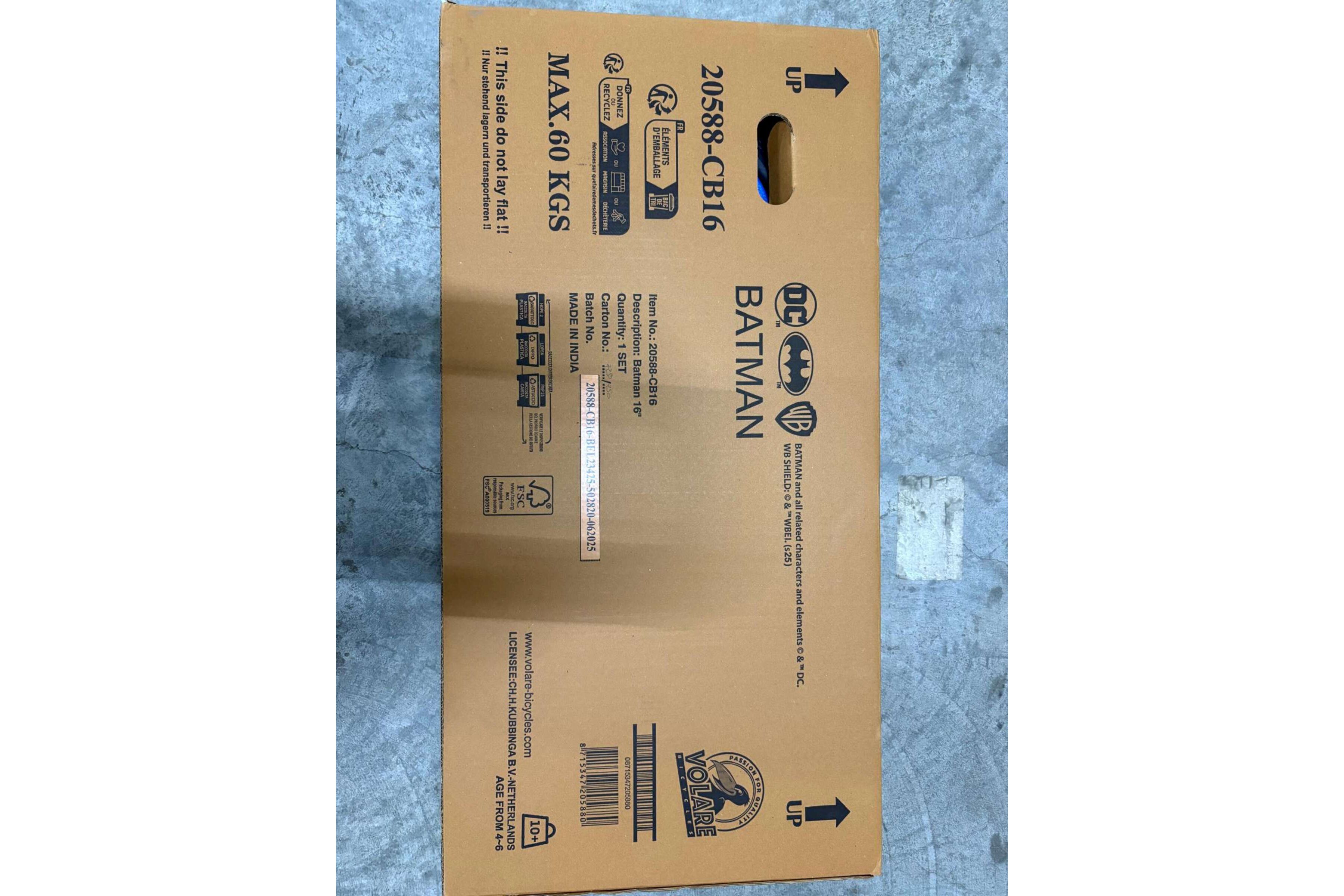 De stoere Batman 16 inch kinderfiets met blauwe accenten is perfect voor jonge helden, met zijwieltjes, bel, reflectoren en extra lange spatborden. Dankzij terugtraprem, handrem, gesloten kettingkast en verstelbaar stuur en zadel is deze officiële Batman-fiets veilig, comfortabel en groeit hij moeiteloos met je kind mee!