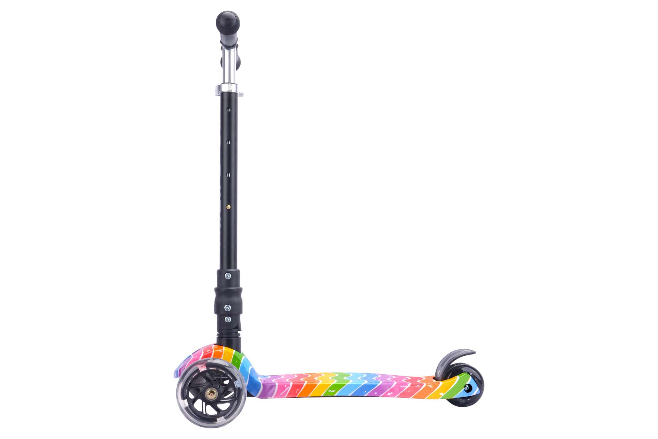 Dankzij het slimme lean-to-steer systeem leren kinderen spelenderwijs hun evenwicht te bewaren, terwijl de drie wielen zorgen voor extra stabiliteit en vertrouwen onderweg. De dubbele achterwielen zijn voorzien van heldere knipperlichten, waardoor je kind altijd goed zichtbaar is. Voor extra veiligheid beschikt de step over een stevige stomprem, waarmee afremmen eenvoudig en betrouwbaar gaat.