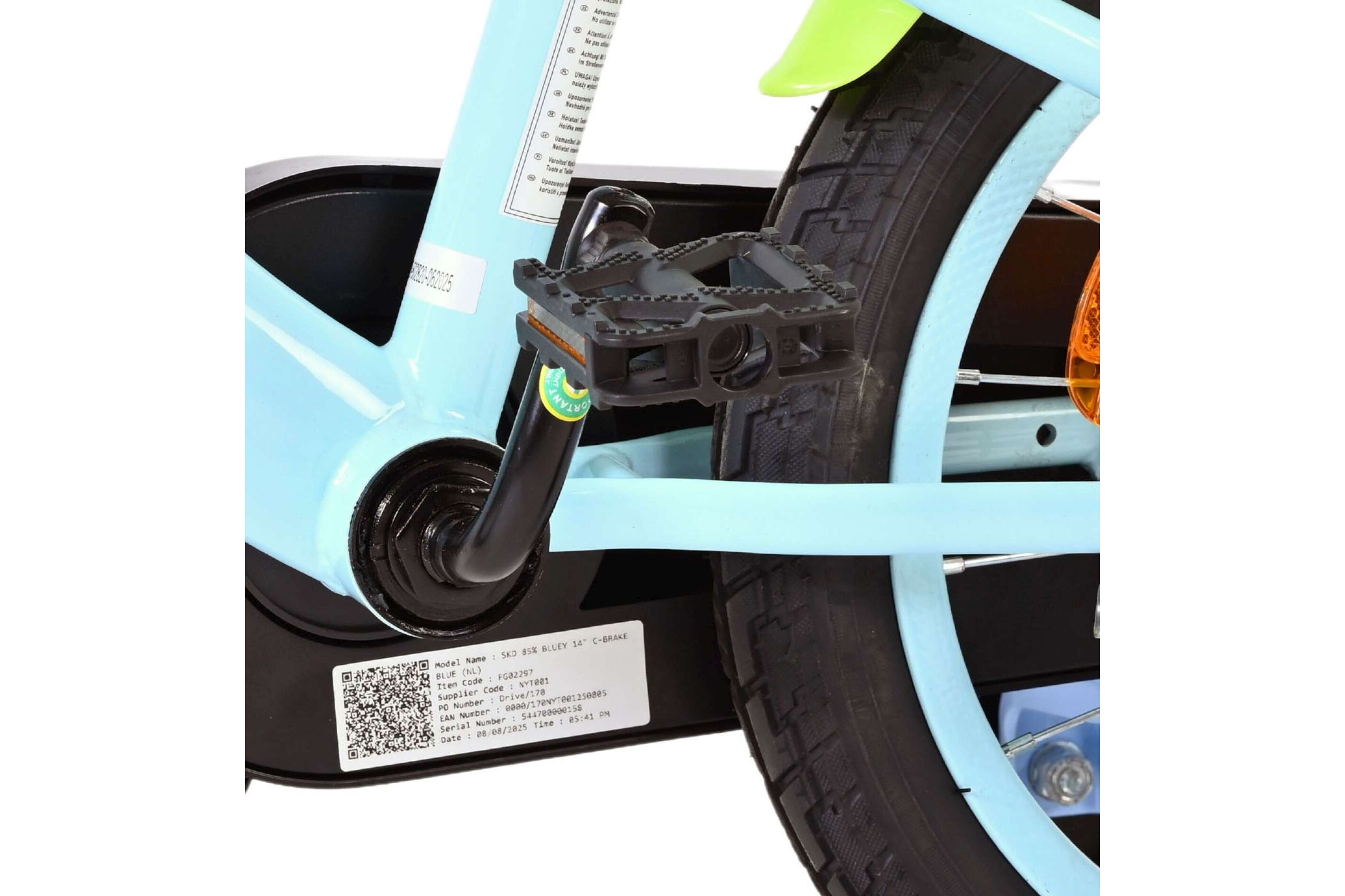 Für kleine Abenteurer gibt es das 14 Zoll große Bluey Kinderfahrrad von Volare – das ideale Fahrrad für Kinder, die bereit sind, selbstbewusst die Welt zu erkunden. Die fröhliche hellblaue Farbe in Kombination mit den auffälligen neongrünen Schutzblechen verleiht diesem Fahrrad einen verspielten und frischen Look, der perfekt zu Blueys energiegeladenem Stil passt.