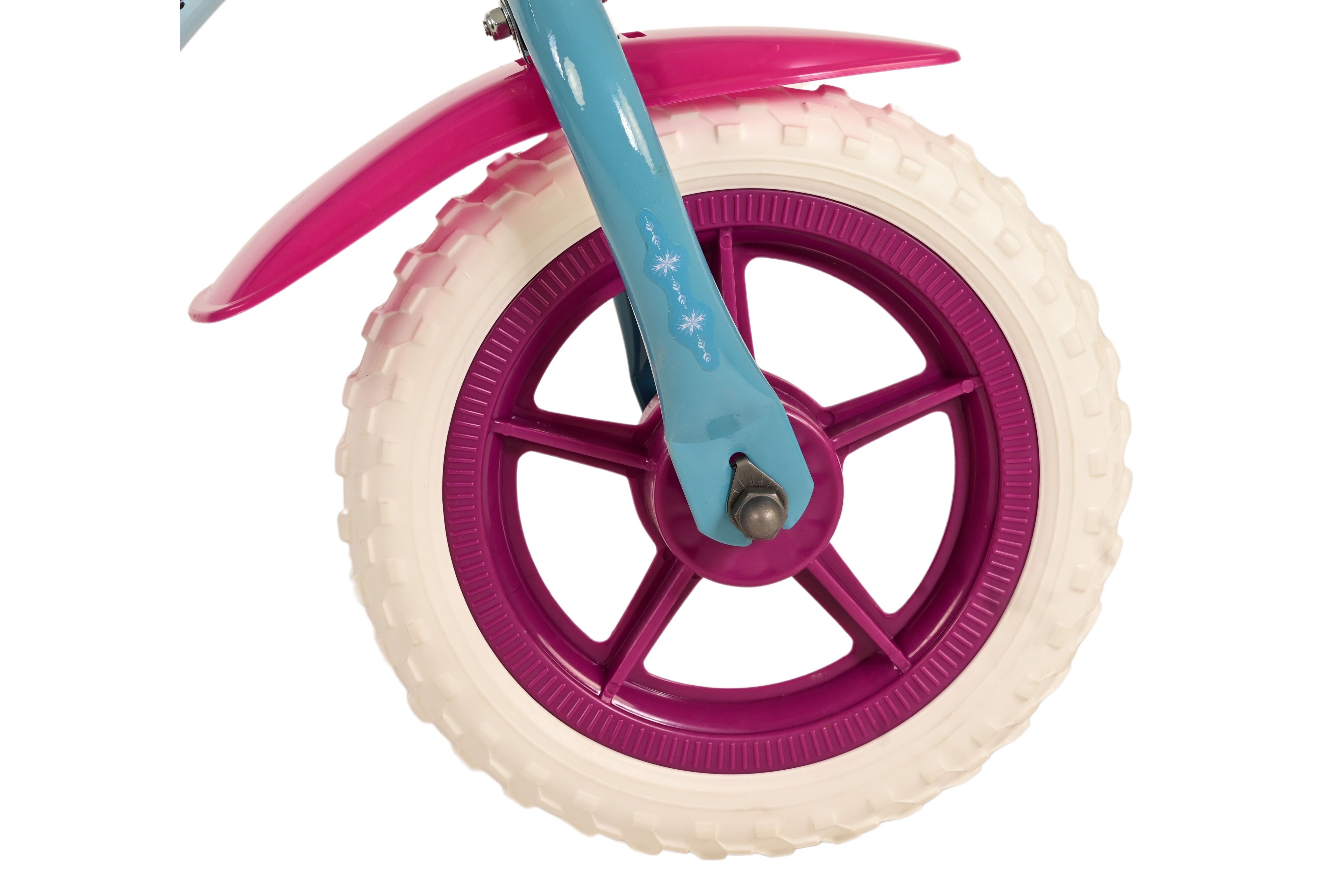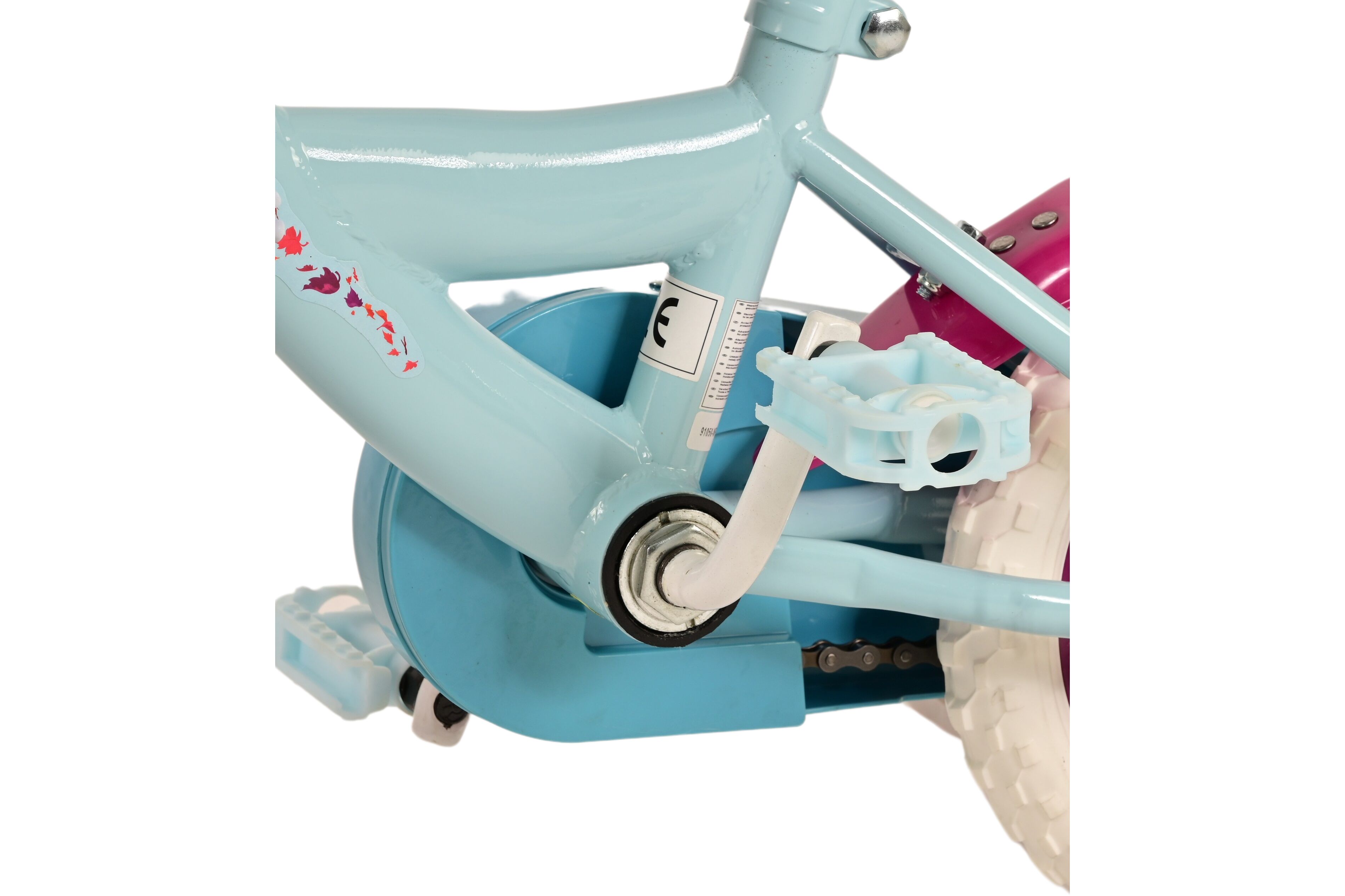 Veiligheid staat voorop! Daarom heeft deze gave fiets een doortrapsysteem waarmee het kind zowel voor- als achteruit kan fietsen, een gesloten kettingkast en afneembare zijwieltjes. Ook aan het comfort is gedacht. De mooie lichtblauwe Disney Frozen fiets met roze accenten heeft luchtvrije schuimbanden die niet lek kunnen gaan. Om zo lang mogelijk van de fiets te kunnen genieten zijn het zadel en stuur in hoogte verstelbaar.