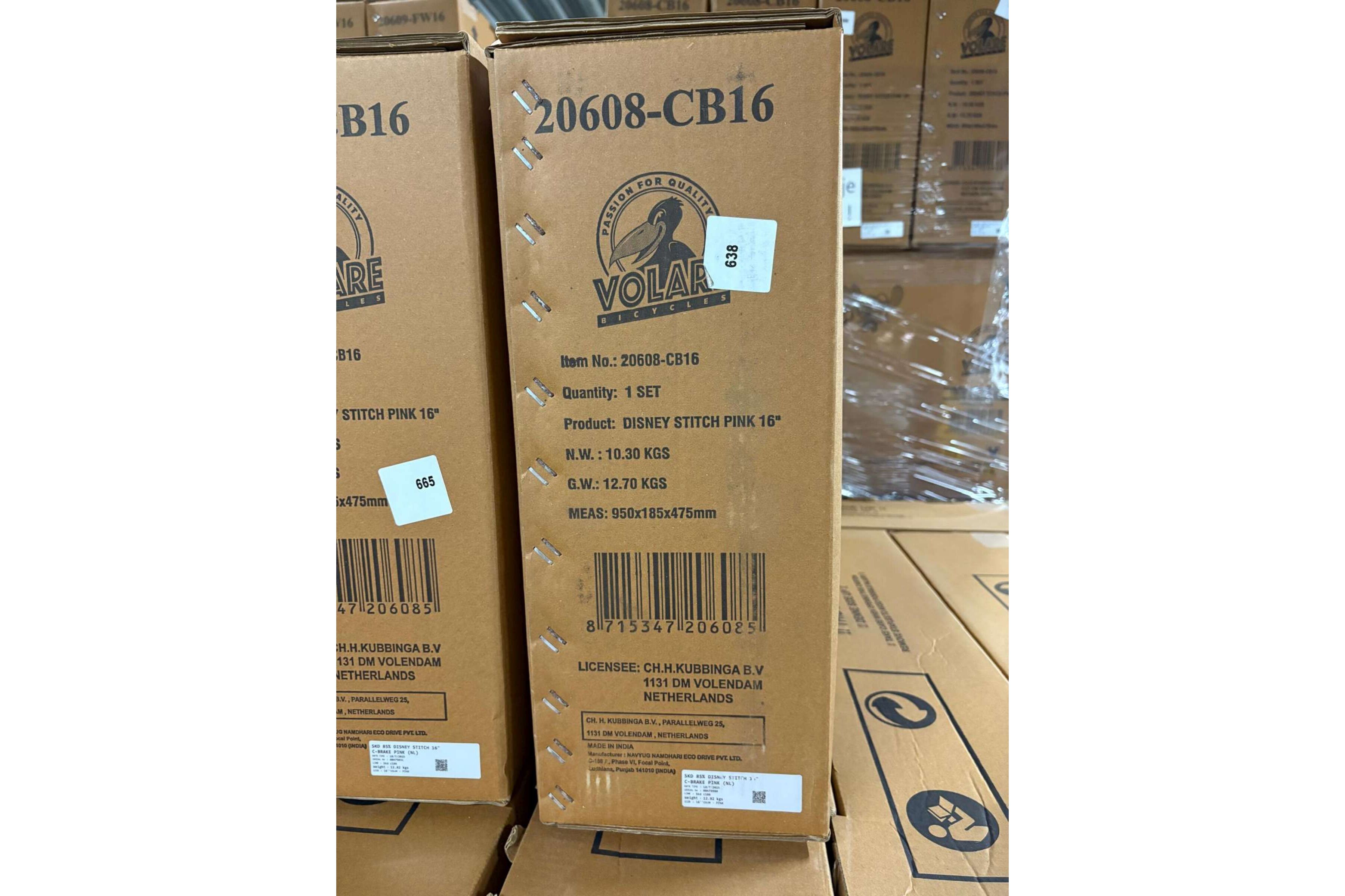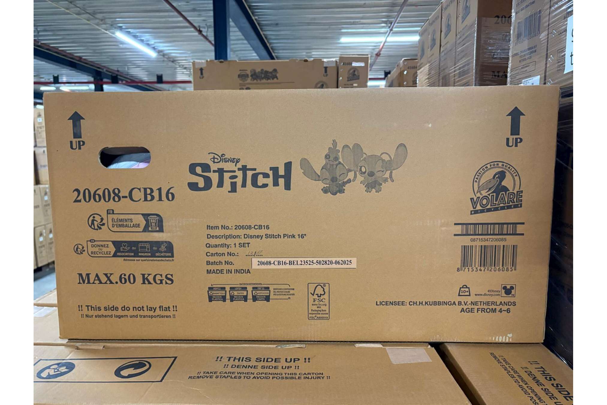 De Disney Stitch 16 inch kinderfiets is een echte blikvanger! Met haar vrolijke lichtroze frame en zonnig gele spatborden brengt deze fiets meteen een glimlach op ieders gezicht. Het leuke mandje voorop maakt de fiets extra speels en handig om favoriete spulletjes mee te nemen.
