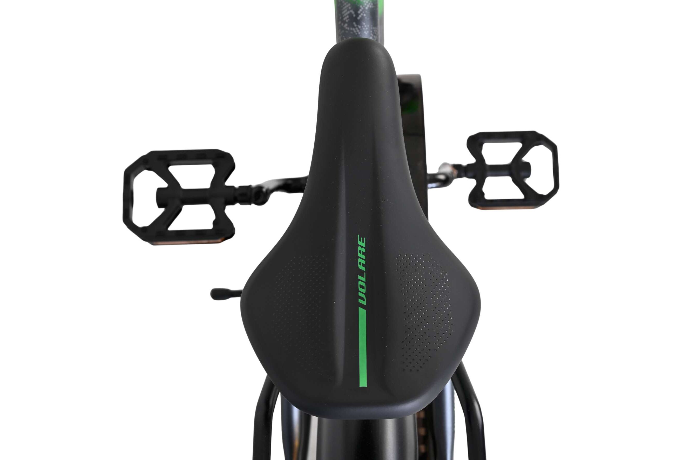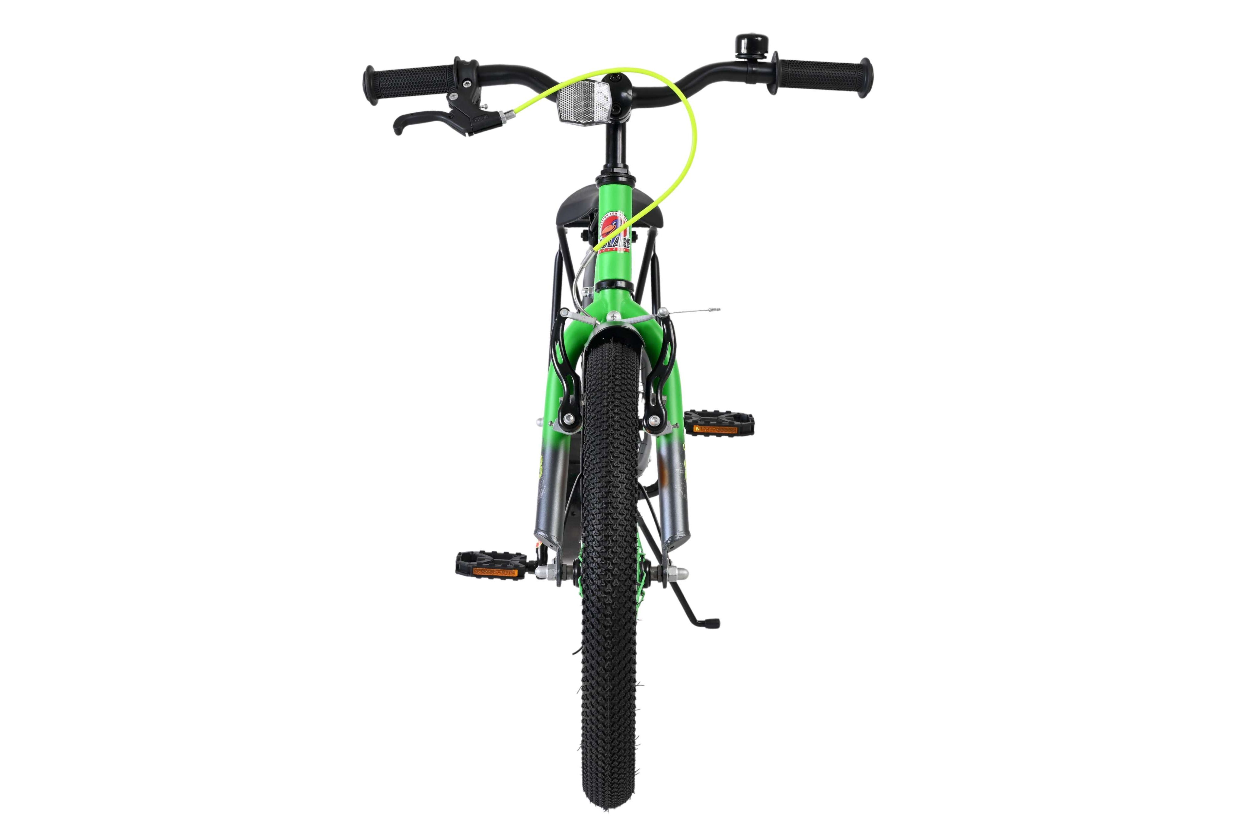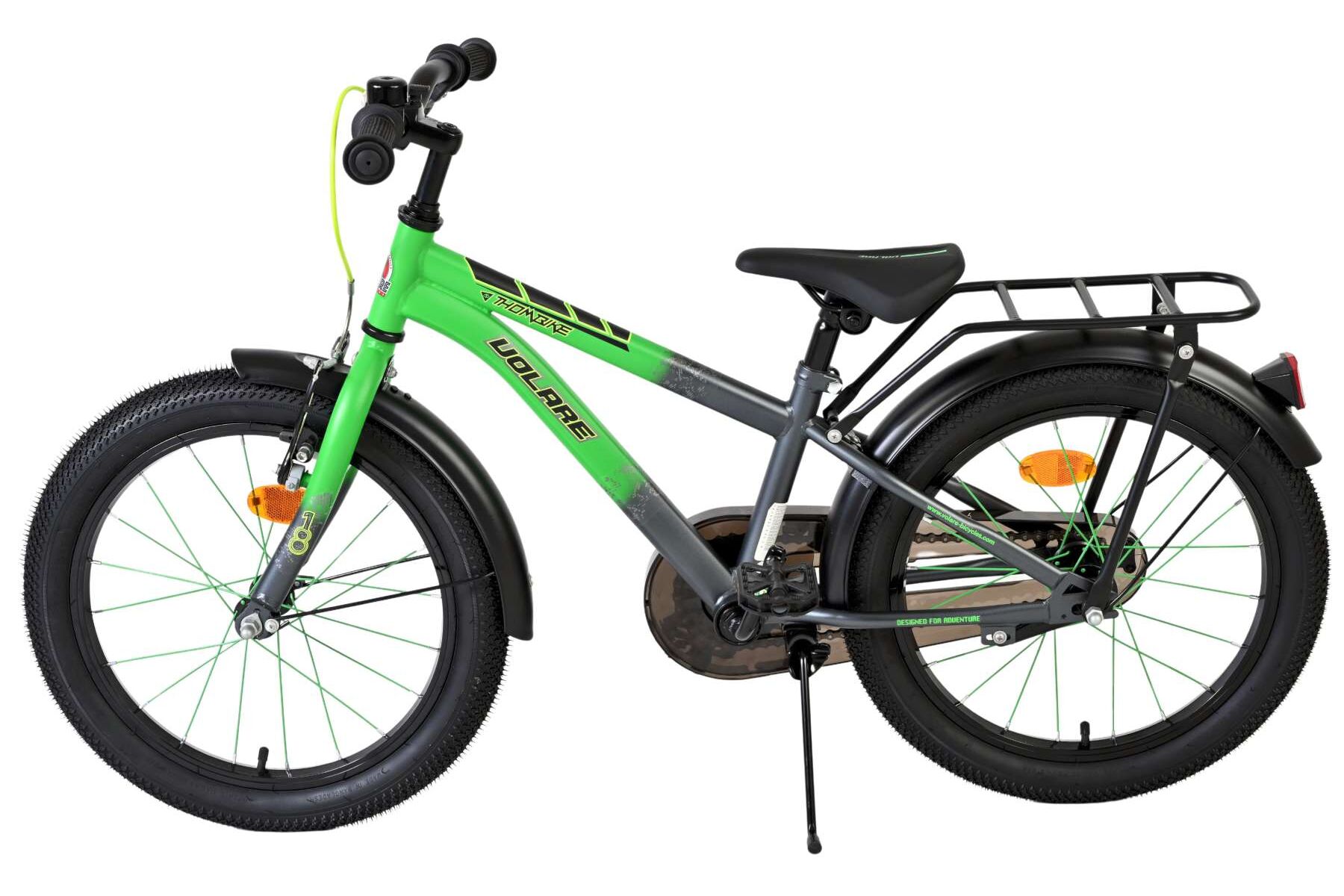 The Volare Thombike 18-inch children's bike in green with gray accents is ideal for children ready for longer distances and new challenges. This sturdy bike features a closed chain guard.