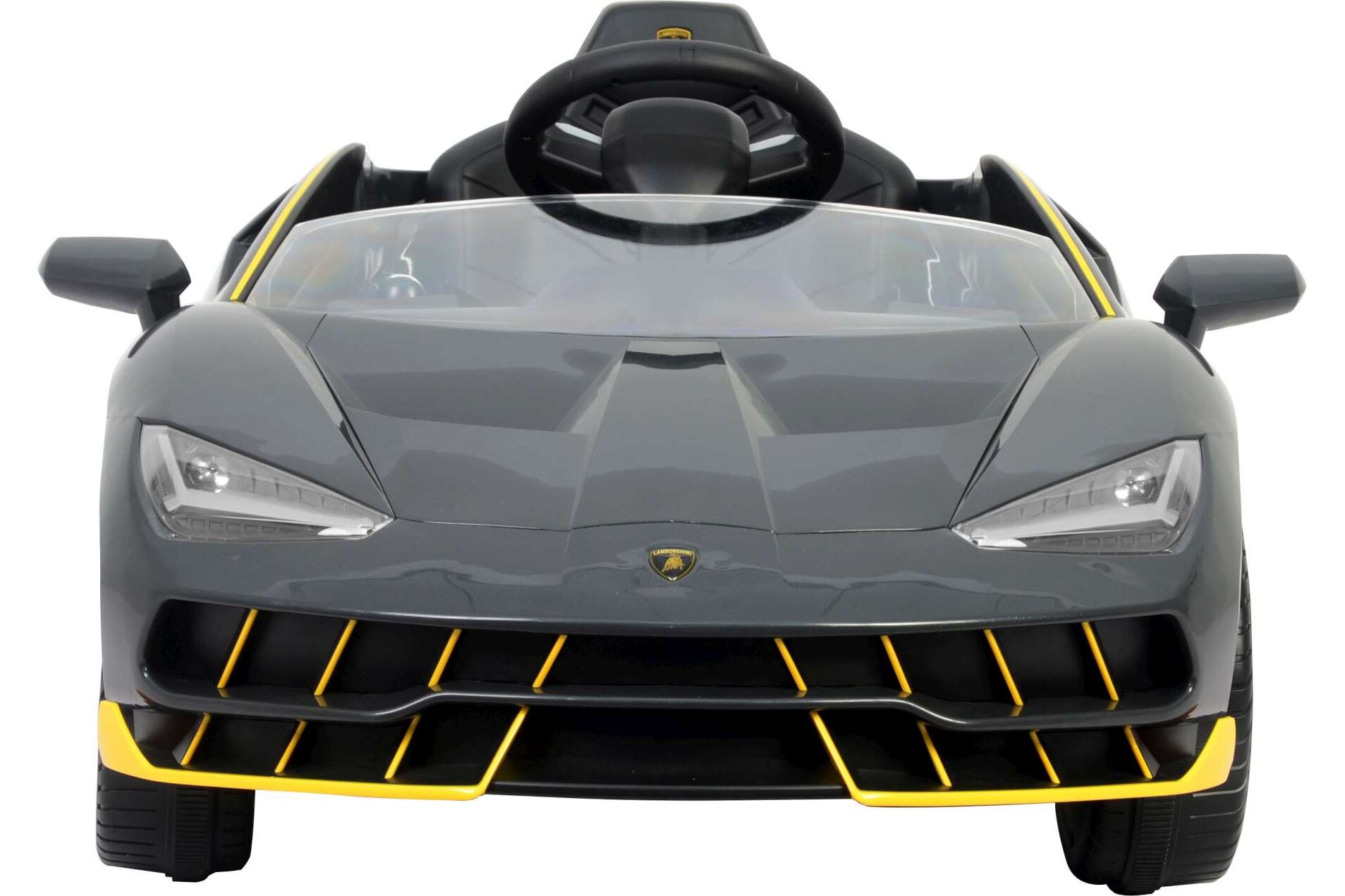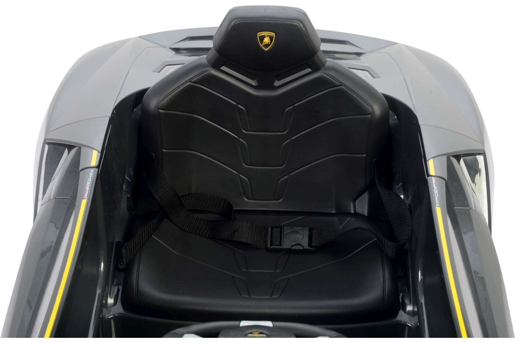 3, 2, 1, GO! Met deze coole elektrische auto kan uw kind racen in een echte sportwagen! Deze auto lijkt sprekend op de echte Lamborghini Centenario met dezelfde grijze kleur met gele accenten en de comfortable stoel met veiligheidsriem.
