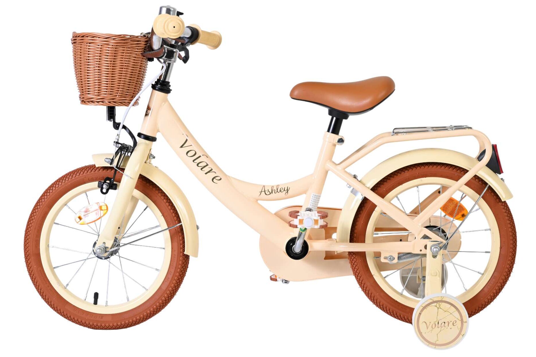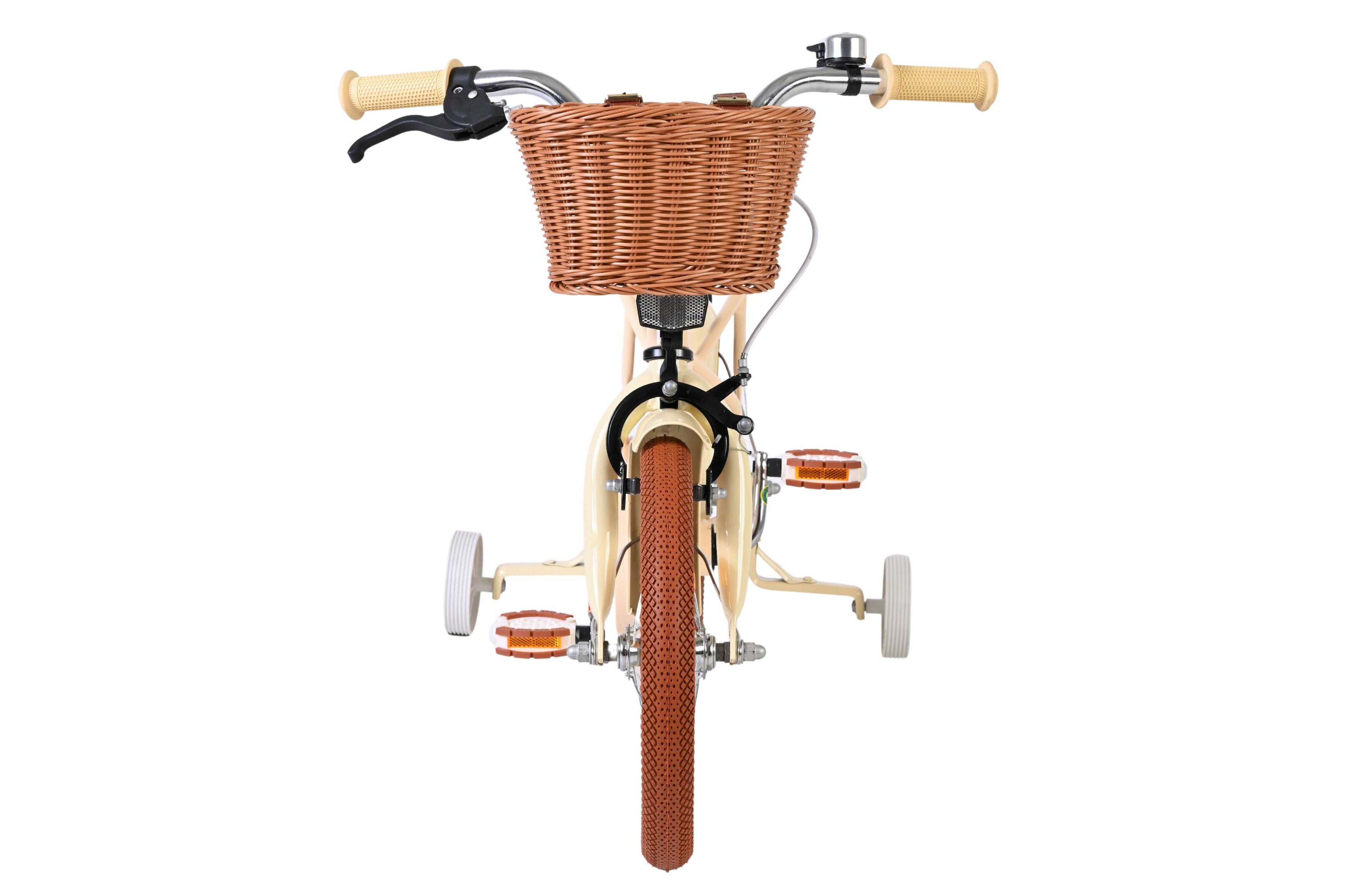 De Volare Ashley 14 inch kinderfiets is een perfecte combinatie van comfort, gebruiksgemak en een vrolijk design. Deze mooie creme fiets is uitgerust met zowel een terugtraprem als een handrem, zodat je kind op een prettige manier leert remmen. De afneembare zijwielen zorgen voor extra stabiliteit tijdens het leren fietsen en kunnen eenvoudig worden verwijderd zodra je kind meer vertrouwen heeft.