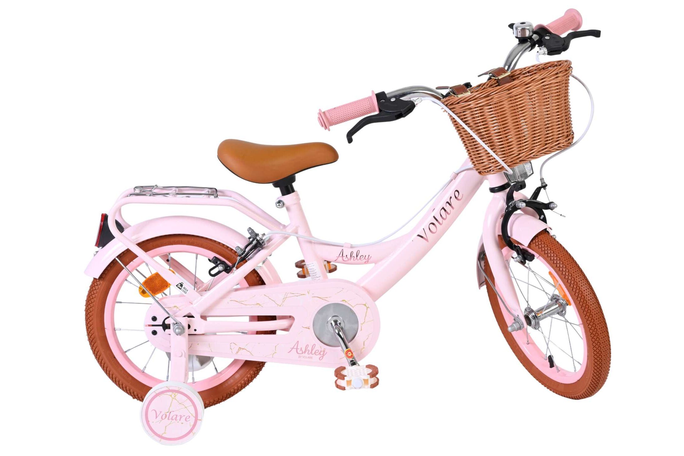 Ook aan praktisch gebruik is gedacht. Het mandje aan de voorkant is ideaal voor het meenemen van speelgoed of andere spulletjes, terwijl de stevige achterdrager zorgt voor extra gebruiksgemak. Met zijn frisse roze kleur en complete uitrusting is de Volare Ashley 14 inch kinderfiets een fijne en betrouwbare keuze voor jonge fietsers.