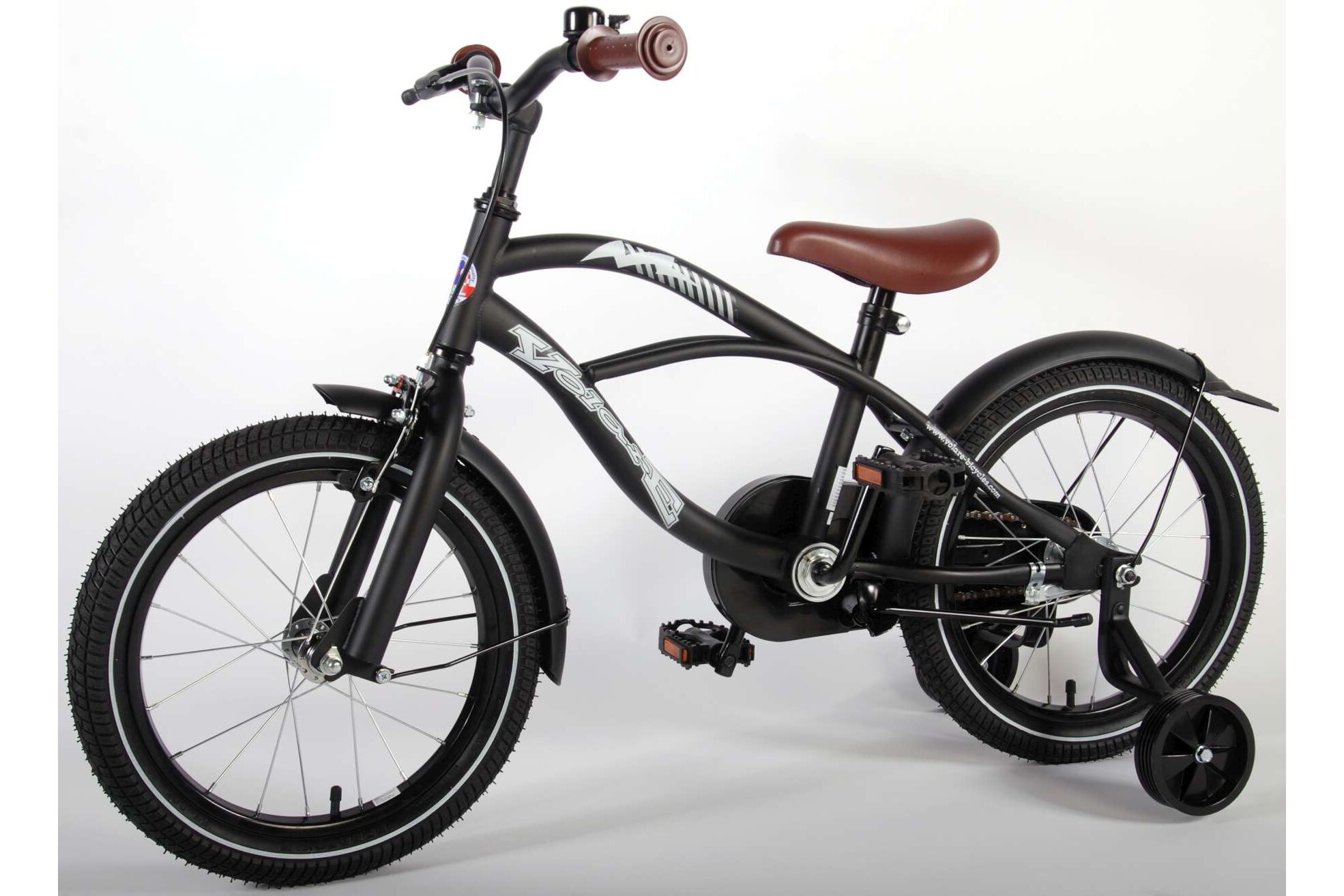 Volare Black Cruiser 16 inch jongensfiets. De Volare Black Cruiser is in mat zwart. In Amerika fietsen de stoere jongens langs de "Beach". Dit wil natuurlijk elke stoere jongen, ook al is hij 5 jaar. Natuurlijk gemaakt van de Volare top kwaliteit.