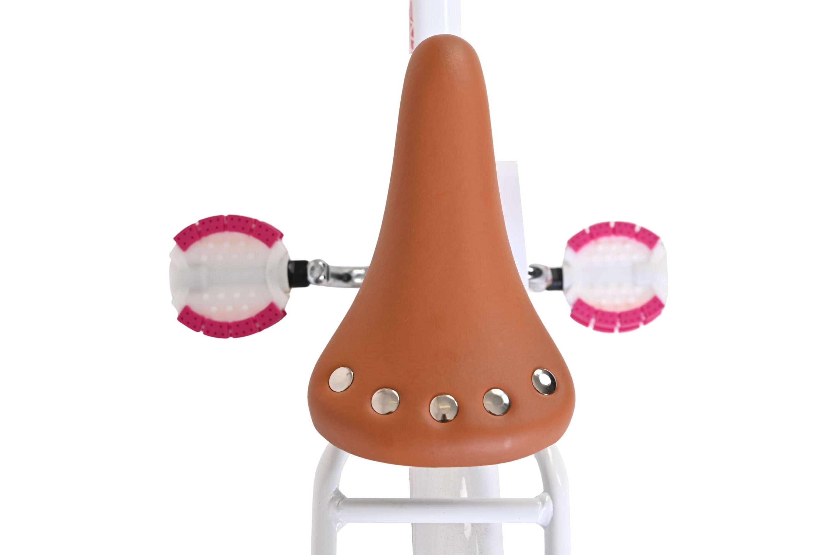 Veiligheid staat voorop! Daarom heeft deze gave fiets een handrem en terugtraprem, afneembare zijwieltjes en een gesloten kettingkast. Daarnaast heeft de fiets reflectoren achter en een leuke bel. Ook aan het comfort is gedacht. De mooie witte Volare fiets heeft een handige achterdrager, een luxe zacht zadel en een handig rieten mandje. Om zo lang mogelijk van de fiets te kunnen genieten zijn het zadel en stuur in hoogte verstelbaar. Wordt geleverd inclusief al het montagemateriaal dat nodig is om de fiets in elkaar te zetten!