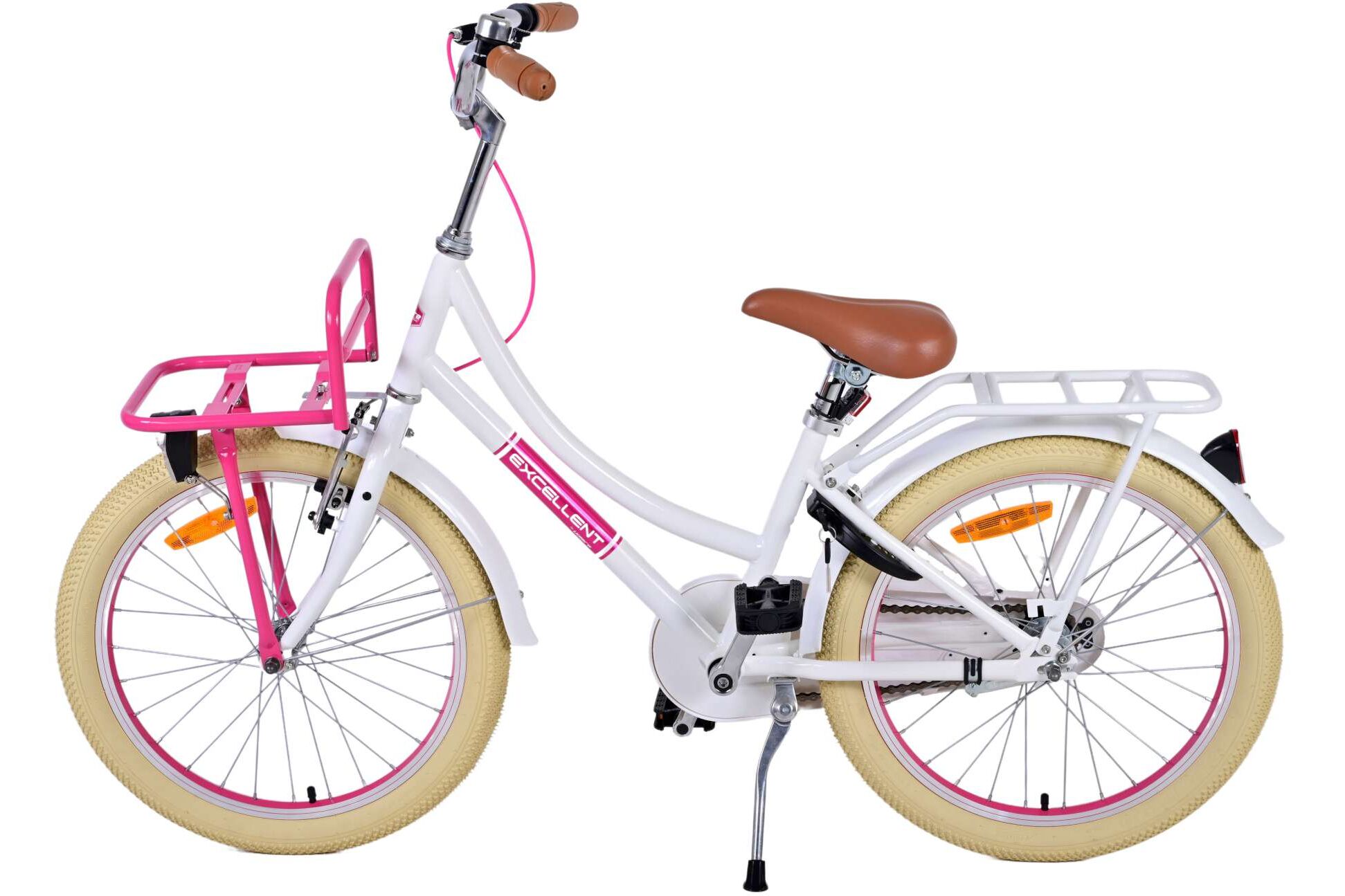 De Volare Excellent 20 inch meisjesfiets is echt een geweldige fiets. Voorzien van een krachtige voor- en achterdrager, een kettingkast en standaard.