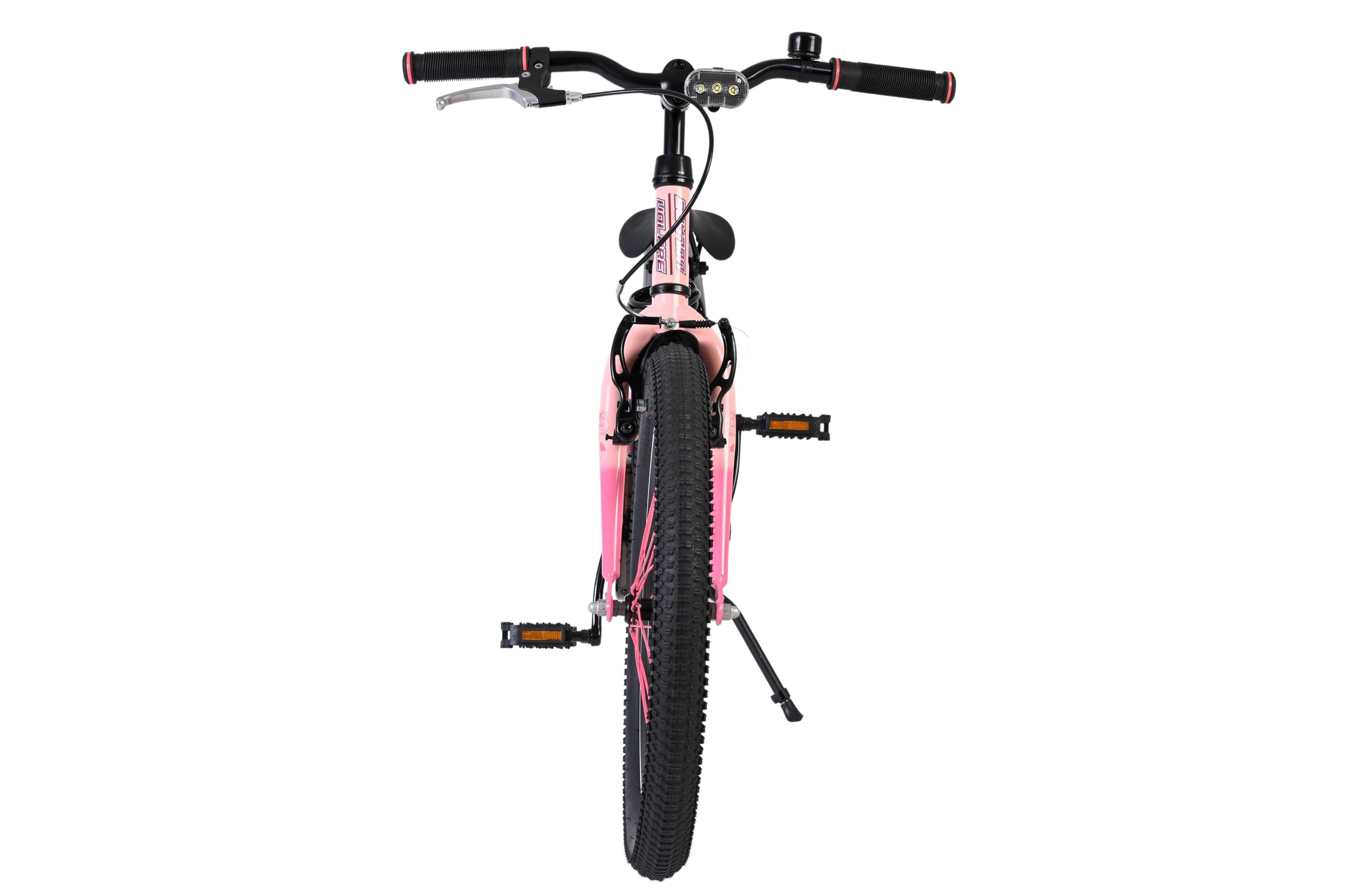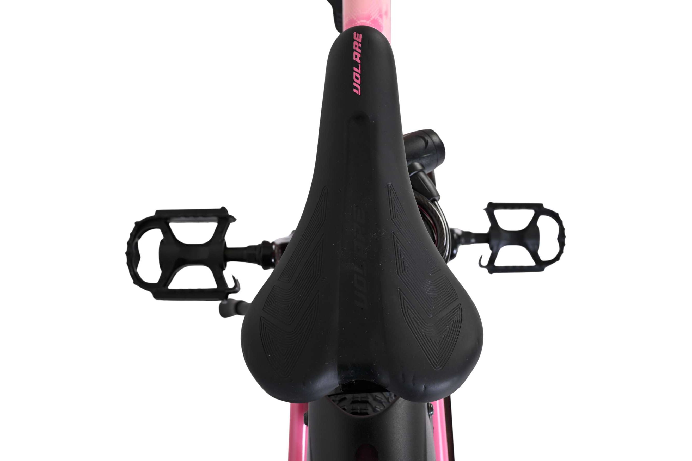 Dankzij de verlichting aan de voor- en achterkant is je kind ook goed zichtbaar in het donker of bij slecht weer. Het sportieve karakter van de Volare Mystic wordt versterkt door de roze spaken, die de fiets een unieke en opvallende uitstraling geven. Voor extra gemak en veiligheid is de fiets voorzien van een slot en een duidelijke bel.
