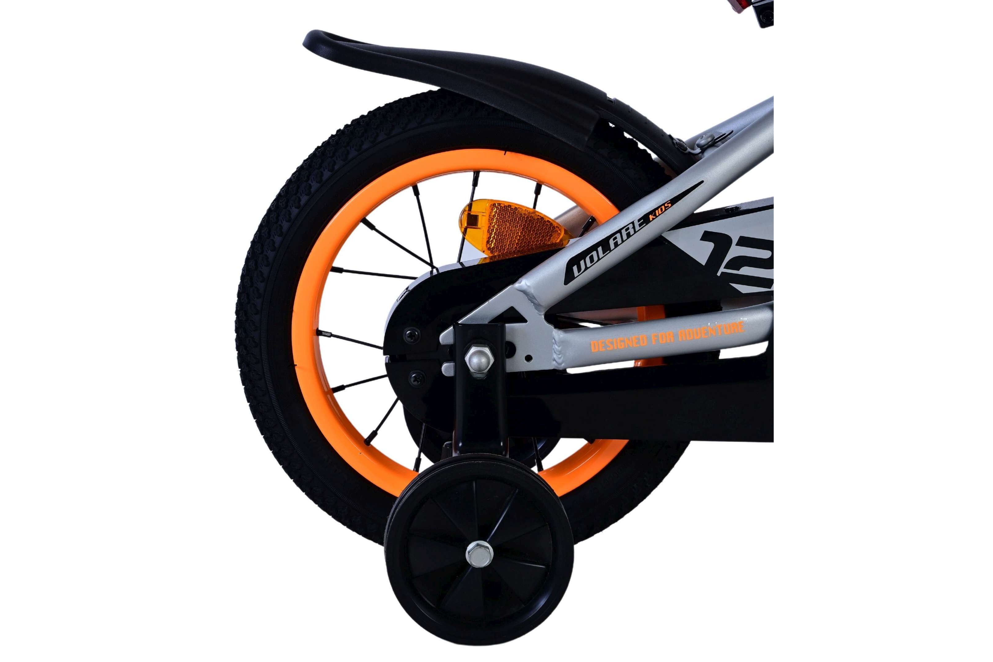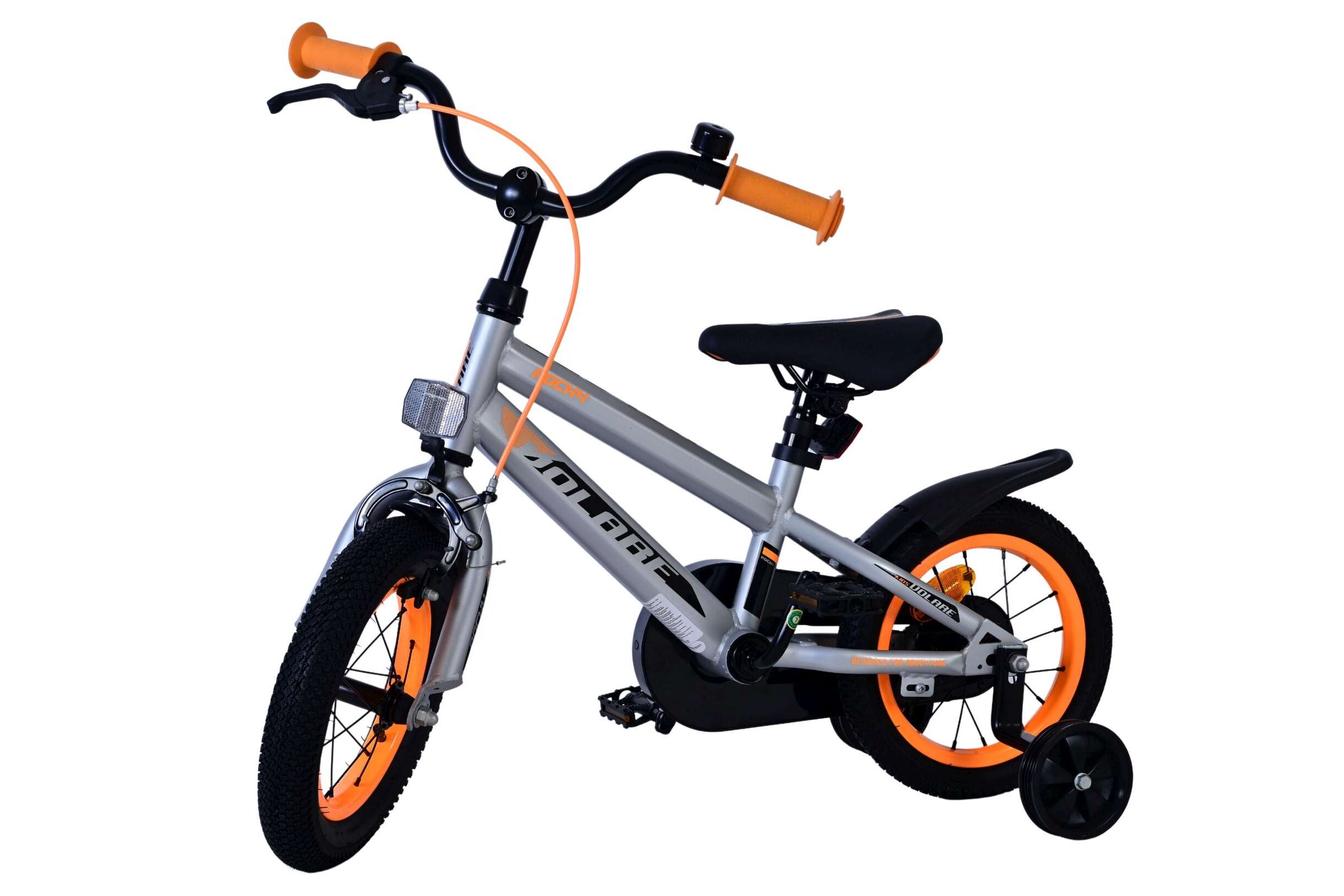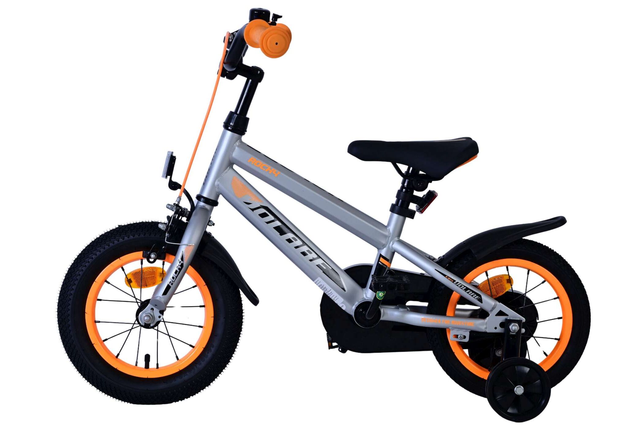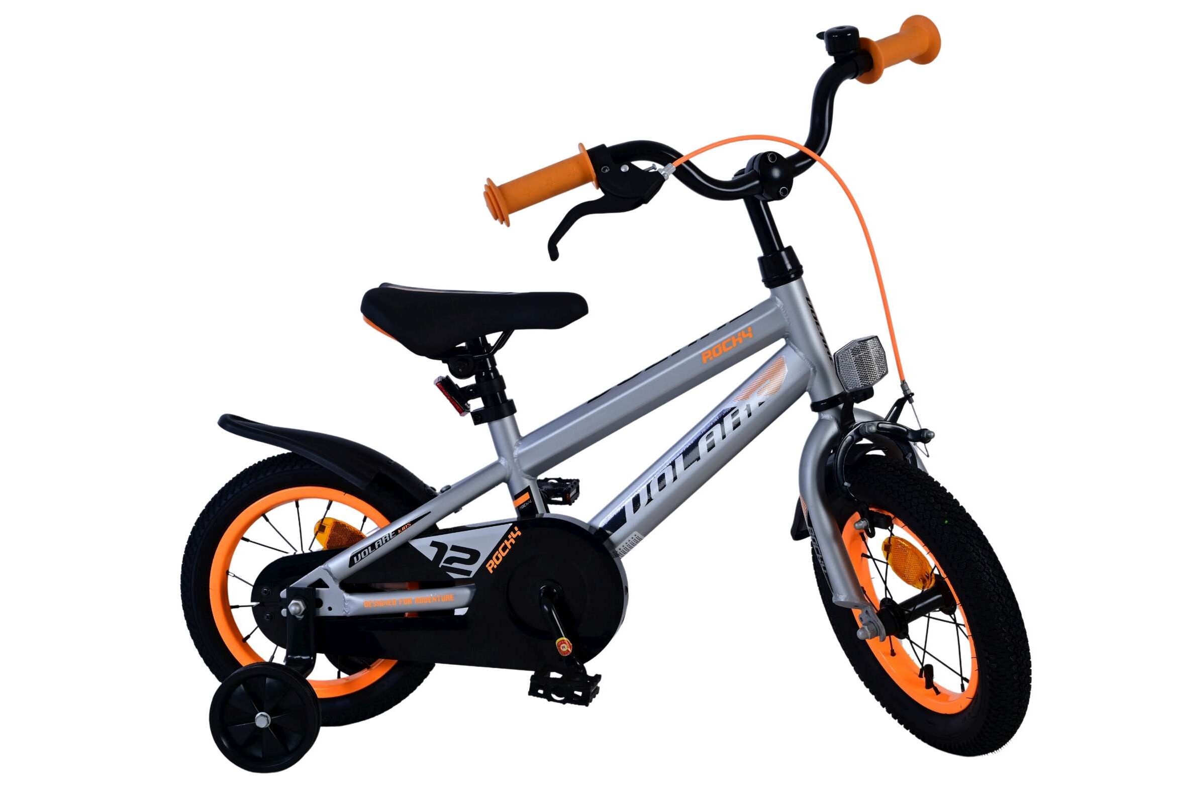 De grijze Volare Rocky 12 inch kinderfiets is stoer, veilig en super comfortabel! Met terugtraprem, zijwieltjes, bel en extra lange zadelpen groeit deze robuuste fiets moeiteloos mee met elk fietsavontuur.