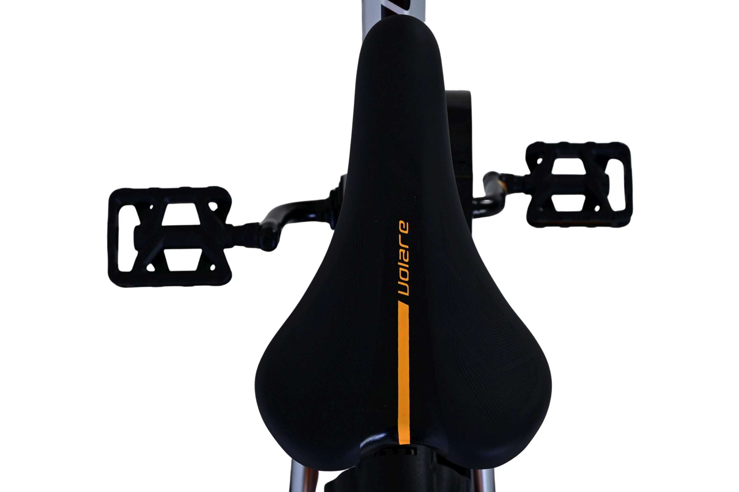 Veiligheid staat voorop! Daarom heeft deze gave fiets een handrem en terugtraprem, een gesloten kettingkast en afneembare zijwieltjes. Daarnaast heeft de fiets een leuke bel. Ook aan het comfort is gedacht. De mooie grijze Volare fiets met oranje accenten heeft een luxe zacht zadel, een strak frame dat wel tegen een stootje kan, en extra lange spatborden om al het vuil tegen te houden. Om zo lang mogelijk van de fiets te kunnen genieten heeft de fiets een extra lange zadelpen waardoor de fiets nóg langer meegroeit. Wordt geleverd inclusief al het montagemateriaal dat nodig is om de fiets in elkaar te zetten!
