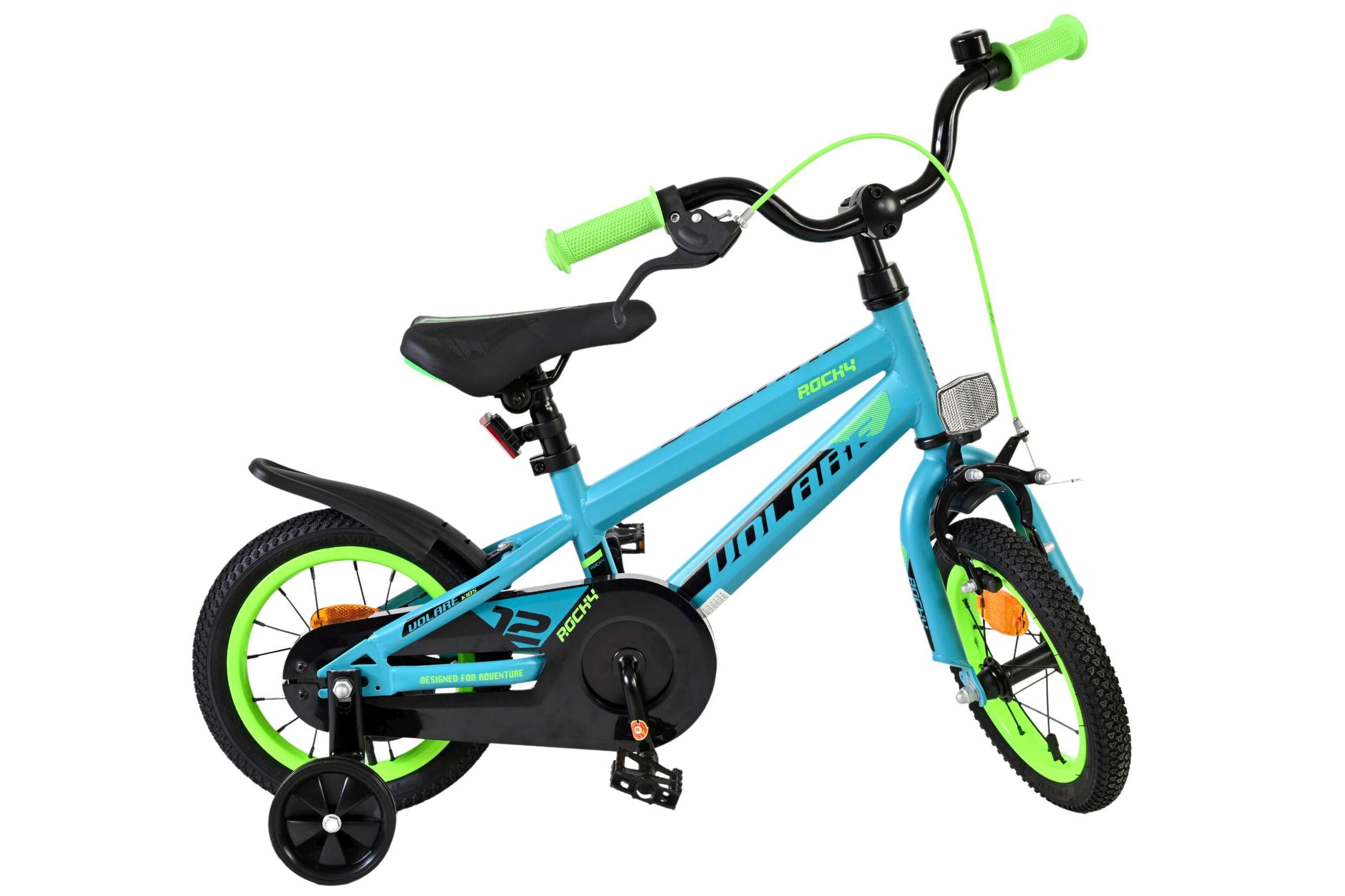De stoere Volare Rocky 12 inch kinderfiets in groen met zwart is perfect voor kleine avonturiers! Met terugtraprem, zijwieltjes, bel en extra lange zadelpen groeit deze robuuste fiets lekker lang mee – ideaal voor elk fietsavontuur.