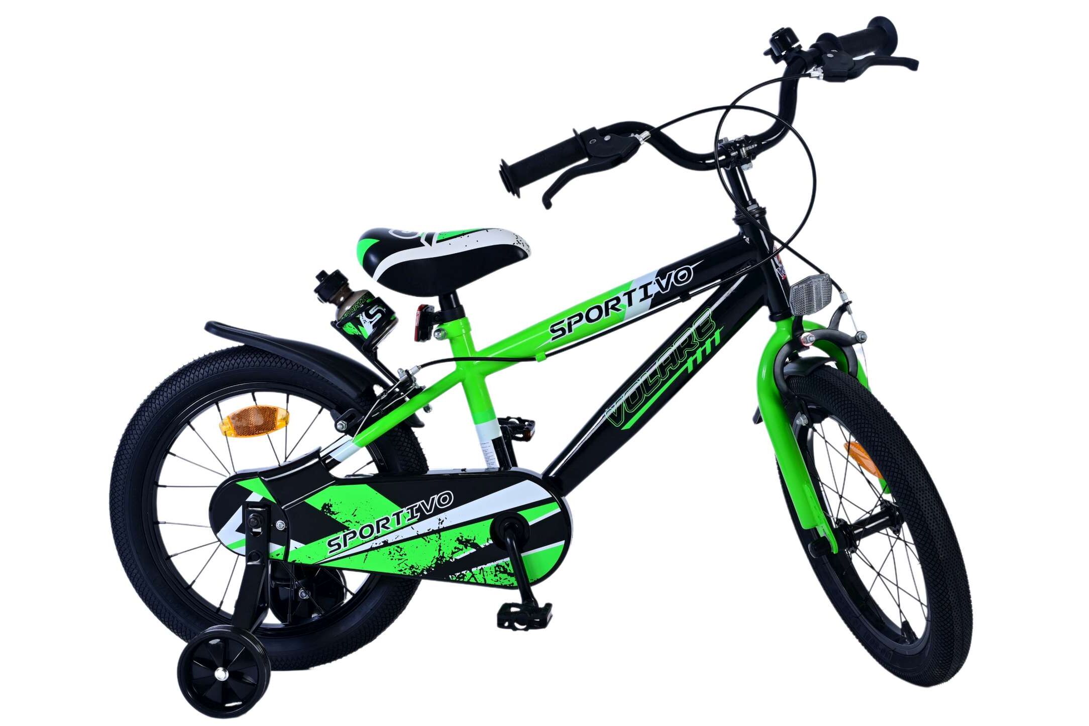 Volare Sportivo Kinderfiets - Jongens - 16 inch - Groen Zwart - Twee Handremmen OUTLET