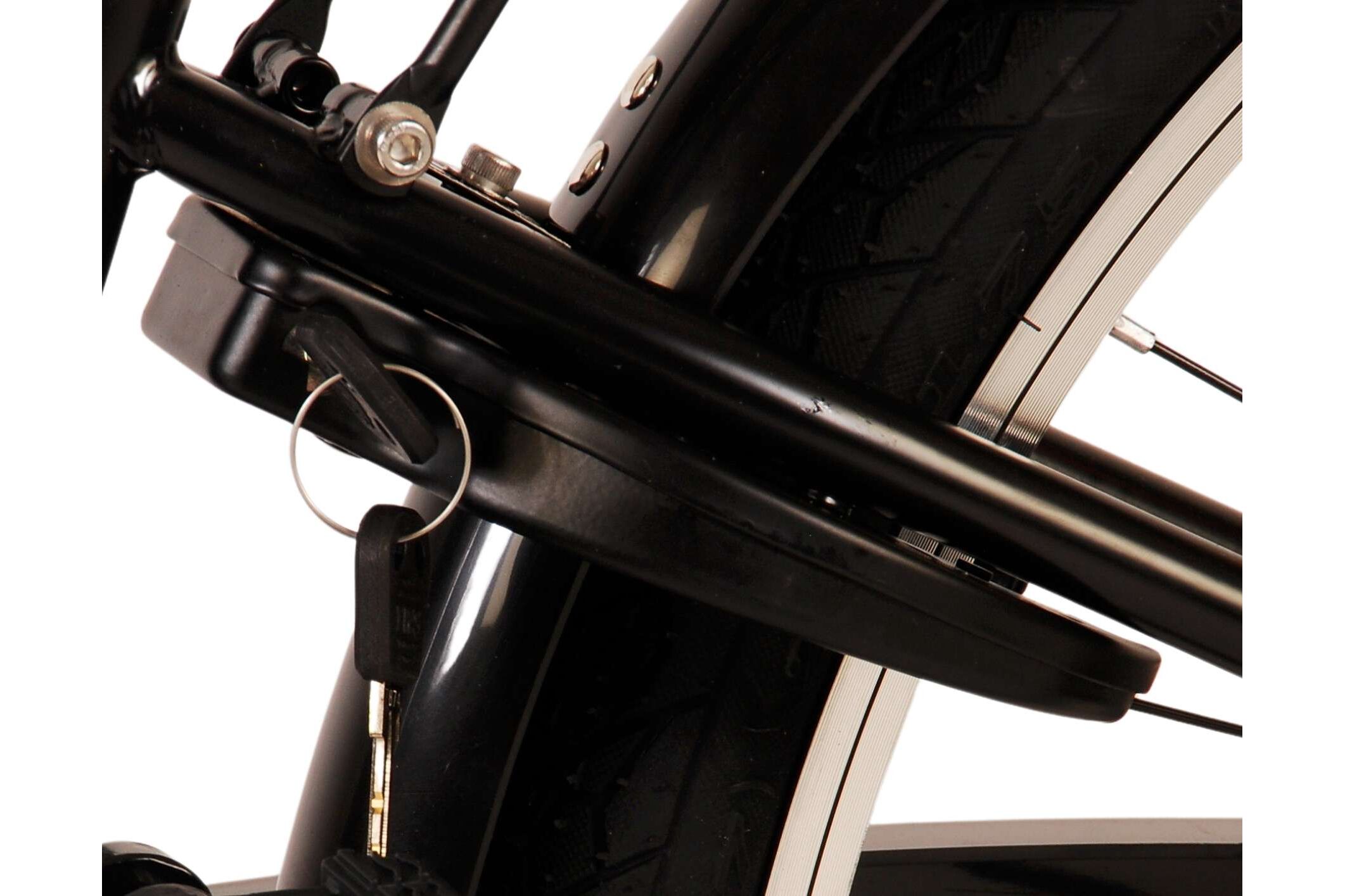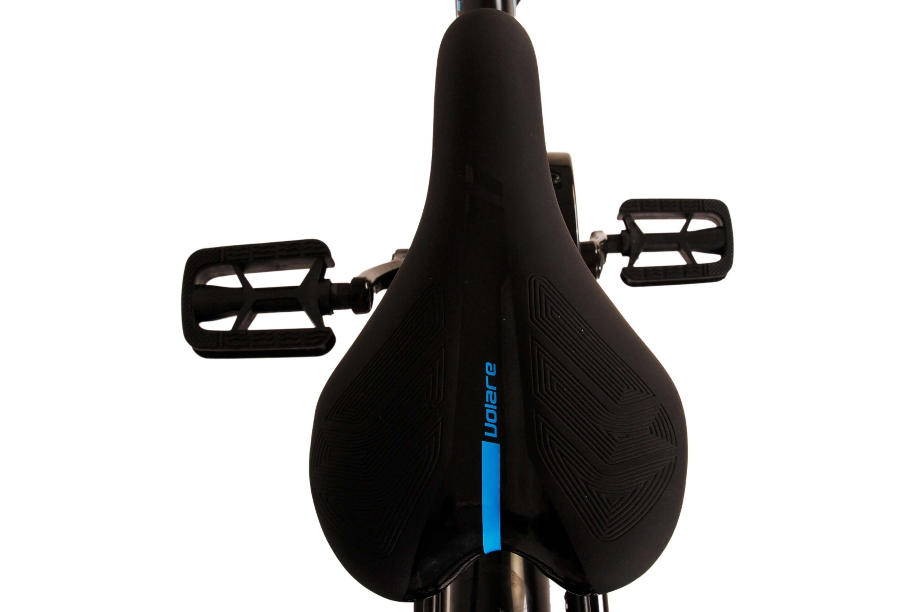 Veiligheid staat voorop! Daarom heeft deze gave fiets een handrem en terugtraprem en verlichting op batterij voor en achter. Daarnaast heeft de fiets een leuke bel en reflectoren in de wielen. Ook aan het comfort is gedacht. De mooie zwarte Volare fiets met blauwe accenten heeft een luxe zacht zadel en extra zachte handvaten, een handige achterdrager, en een stevig frame dat wel tegen een stootje kan. Verder heeft de fiets een standaard zodat hij netjes blijft staan en een sterk slot. Om zo lang mogelijk van de fiets te kunnen genieten heeft deze een extra lange zadelpen waardoor de fiets nóg langer met het kind meegroeit en ook het stuur is in hoogte verstelbaar.
