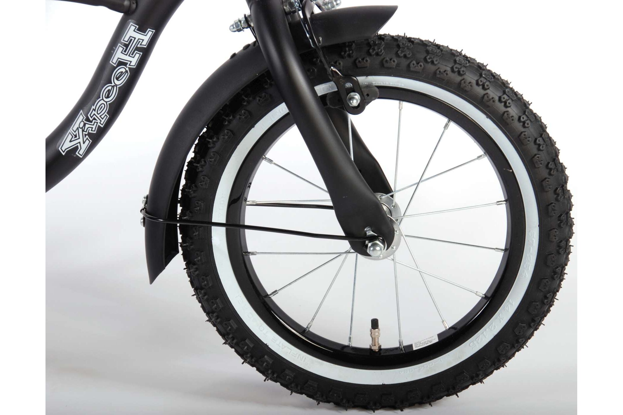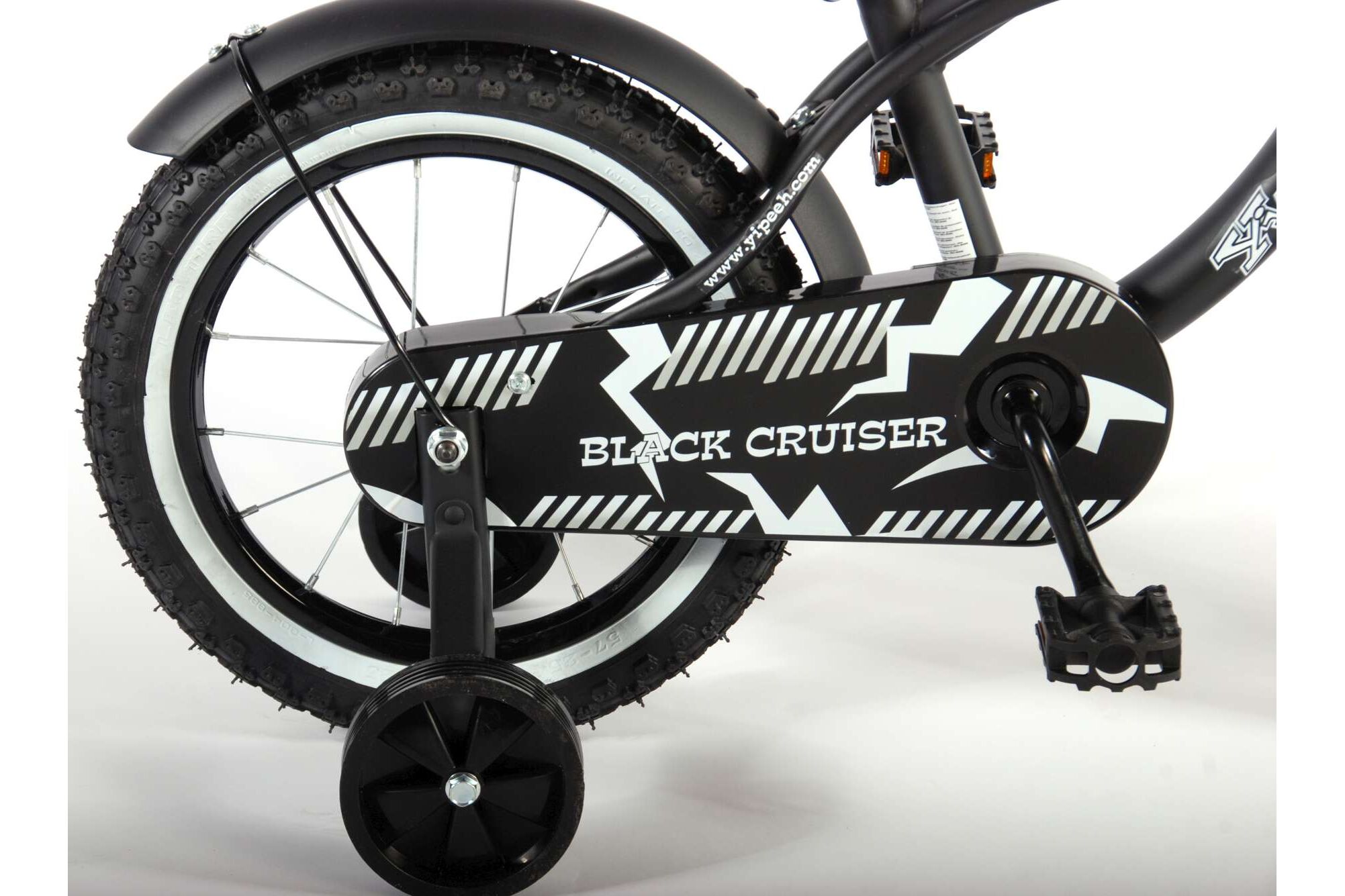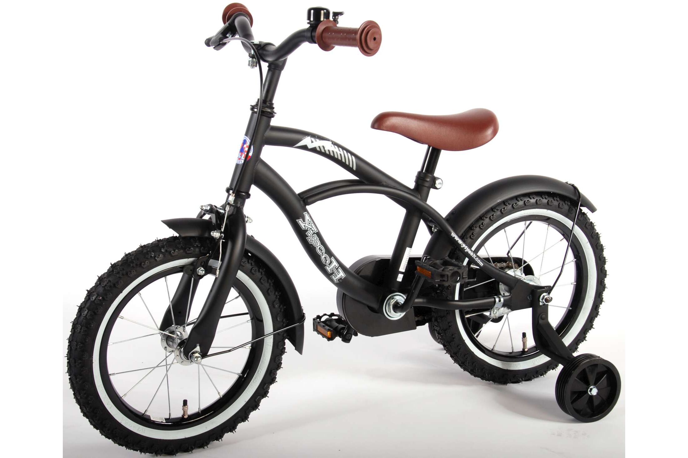 Yipeeh Black Cruiser 14 inch OUTLET kinderfiets. De Yipeeh Black Cruiser is in mat zwart. In Amerika fietsen de stoere jongens langs de "Beach". Dit wil natuurlijk elke stoere jongen, ook al is hij 3,5 jaar. Met stevige zijwieltjes om snel te kunnen leren fietsen. Topper! Deze fiets is voor 95% afgemonteerd, dus bijna fietsklaar. Wel zo gemakkelijk!
